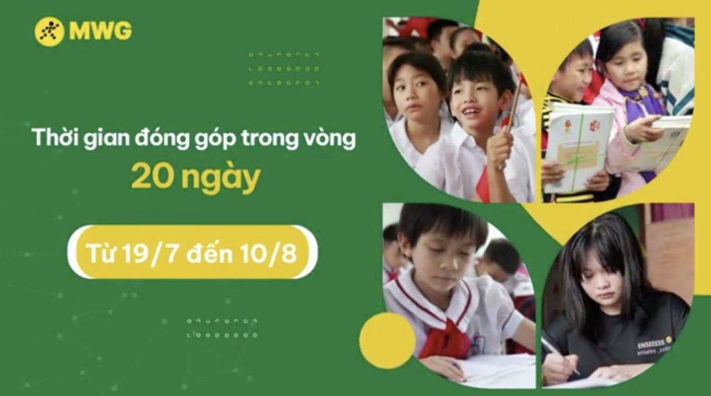 Diễn ra từ ngày 19/07 đến 10/08/2022, chiến dịch năm nay đã nhận được sự quan tâm và đóng góp tích cực từ đông đảo thành viên nội bộ. Tổng cộng, chương trình đã huy động được 593.300.000 đồng, hỗ trợ cho 510 em nhỏ là con của 370 nhân viên MWG. Sự hỗ trợ từ chương trình không chỉ mang tính vật chất mà còn là nguồn động viên tinh thần to lớn, tiếp thêm động lực cho các em trong hành trình học tập và cho chính cha mẹ các em – những đồng nghiệp thân thương của chúng ta.