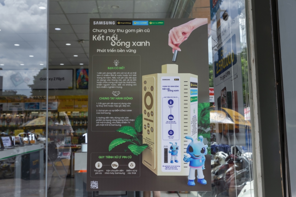 Công ty Điện tử Samsung Vina hợp tác cùng Tập Đoàn Thế Giới Di Động triển khai hoạt động “Chung tay xử lý pin đã qua sử dụng” trên toàn quốc. Chương trình nằm trong cam kết và tầm nhìn phát triển bền vững của hai bên, cùng hướng đến những giải pháp thân thiện giúp bảo vệ môi trường và cuộc sống tốt đẹp hơn.
