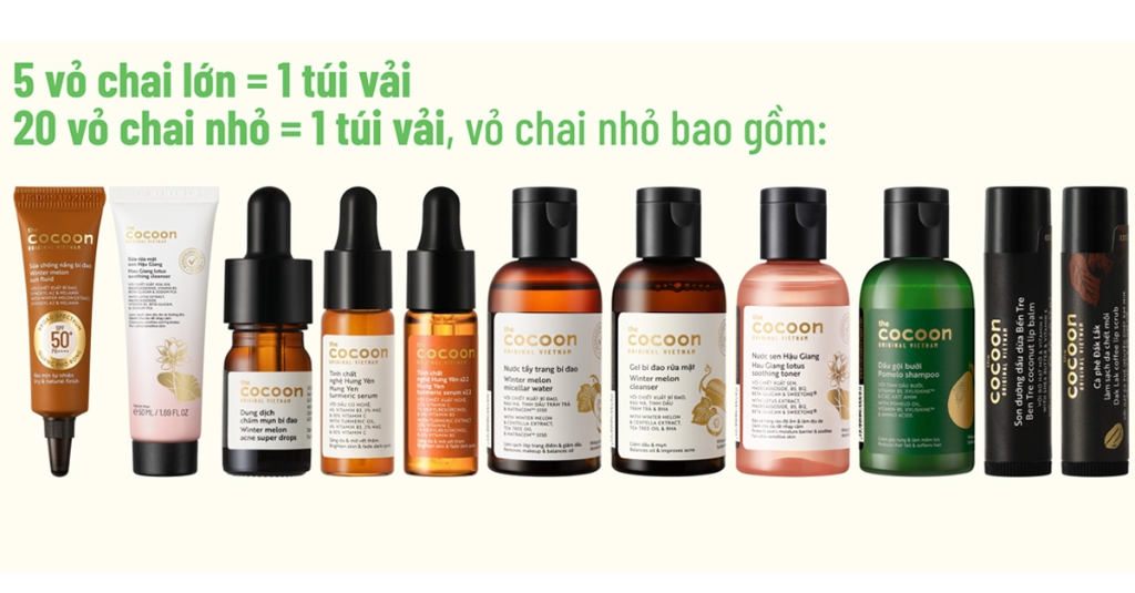 - Hạn chế rác thải nhựa. Suốt gần 4 năm qua, Cocoon đã thu hồi được hơn 74.000 vỏ chai cũ.