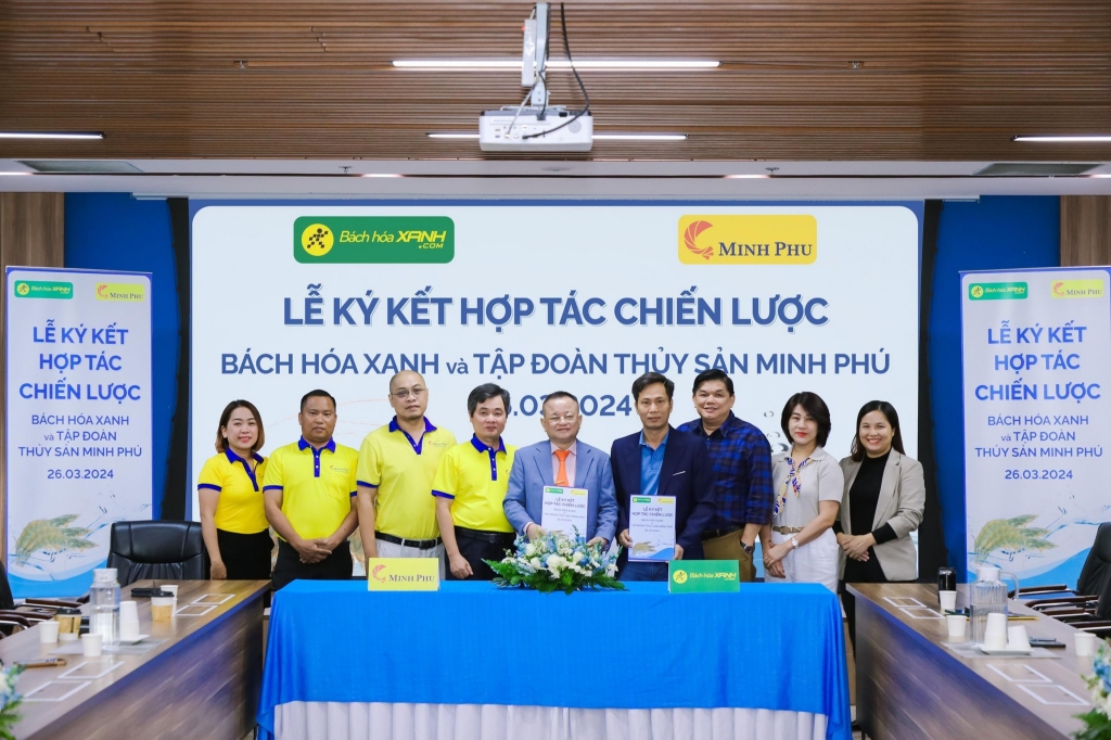 Nhằm tiếp tục cung cấp nguồn thực phẩm chất lượng và an toàn đến người tiêu dùng, ngày 26/3, Bách Hoá XANH chính thức ký kết hợp tác chiến lược cùng tập đoàn Minh Phú – doanh nghiệp đầu ngành có hơn 30 năm kinh nghiệm trong lĩnh vực thuỷ sản tại Việt Nam. Theo đó, Bách Hóa XANH sẽ chính thức phân phối các dòng tôm đạt tiêu chuẩn xuất khẩu Nhật, Mỹ và Liên minh châu Âu (EU), được nuôi trong môi trường không kháng sinh, không hoá chất của Minh Phú tại hệ thống Bách Hóa XANH toàn quốc.