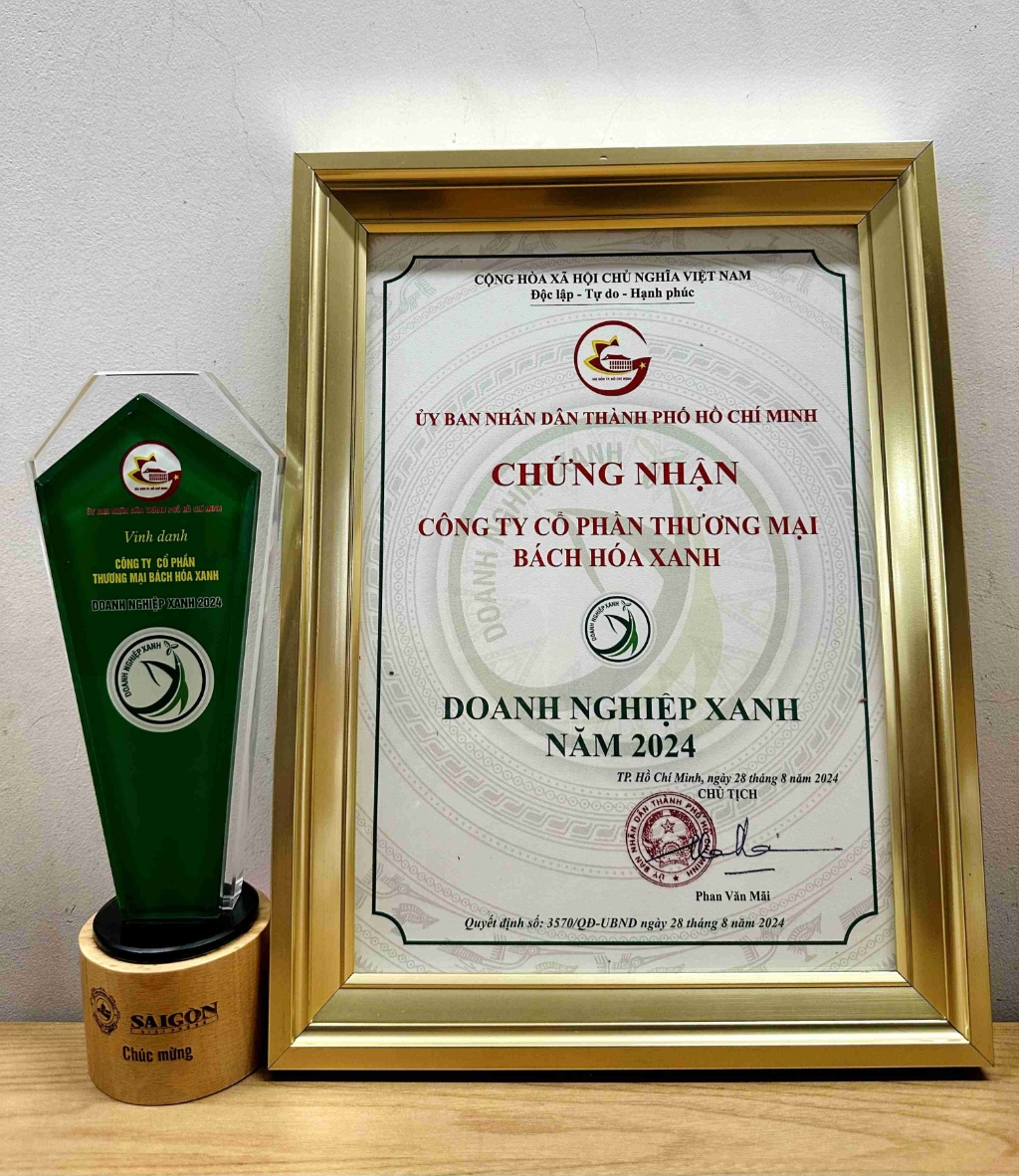 Surpassing many other enterprises, Bach Hoa Xanh was awarded the title of "Green Enterprise of Ho Chi Minh City 2024" in the trade and services category by the People's Committee of Ho Chi Minh City.
