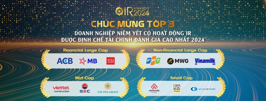 The IR Awards (2011-2024), co-organized by Vietstock, the Vietnam Association of Financial Executives (VAFE), and FiLi Magazine, is prestigious in the securities sector. The program honors listed companies with outstanding IR practices that meet the standards of transparent and efficient information disclosure, reinforcing investor trust.