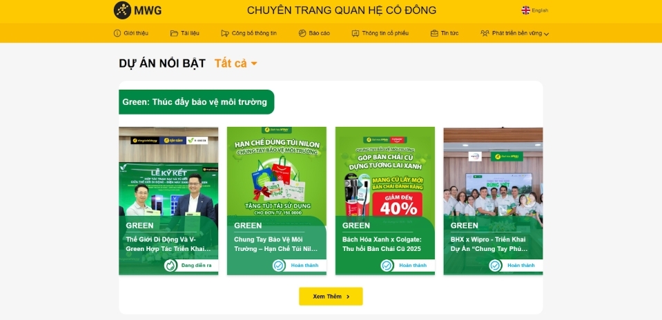 In addition to being included in the Top 20 companies with the highest sustainability performance, in October 2025, MWG was also honored among the Top 3 at the IR Awards, recognizing its achievements in meeting information disclosure standards, enhancing transparency, and improving the quality of investor relations. At the same time, MWG continued to be listed among the Top 50 Best-Performing Companies in Vietnam 2025 and the Top 50 Corporate Sustainability Awards in Vietnam 2025 - rankings conducted by Nhip Cau Dau Tu Magazine in collaboration with Thien Viet Securities Joint Stock Company - affirming the company’s operational efficiency and sustainable growth capacity.