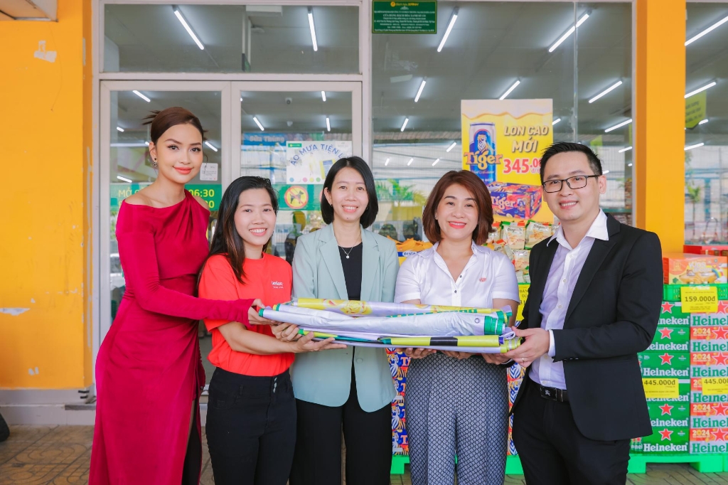 Immediately after the signing ceremony, representatives from both sides witnessed the banner collection activity at the supermarket, which will be carried out at the end of each month. The activity was attended by Miss Universe Vietnam 2022 Ngọc Châu.