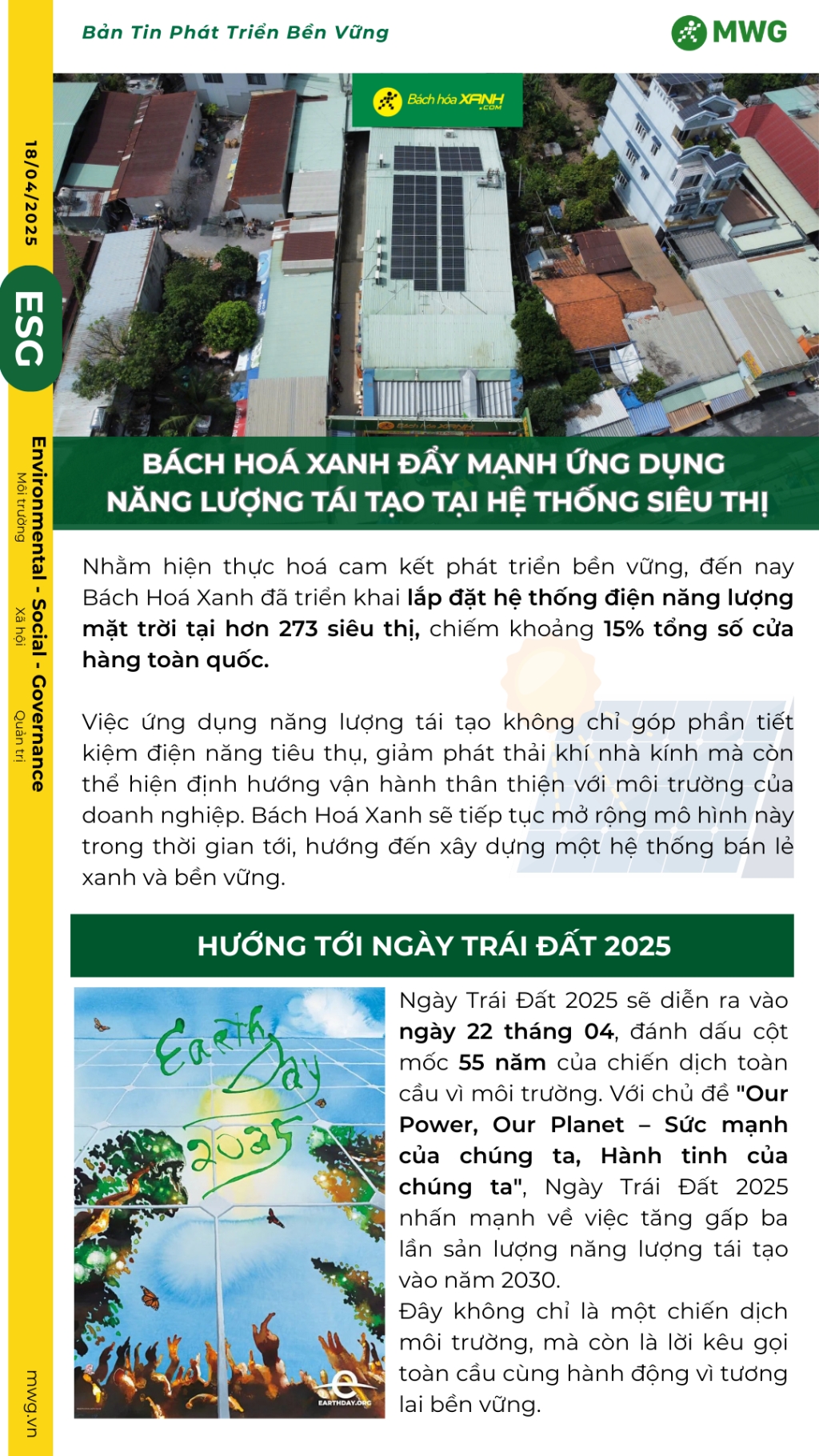 Bách Hoá XANH Đẩy Mạnh Ứng Dụng Năng Lượng Tái Tạo Tại Hệ Thống Siêu Thị