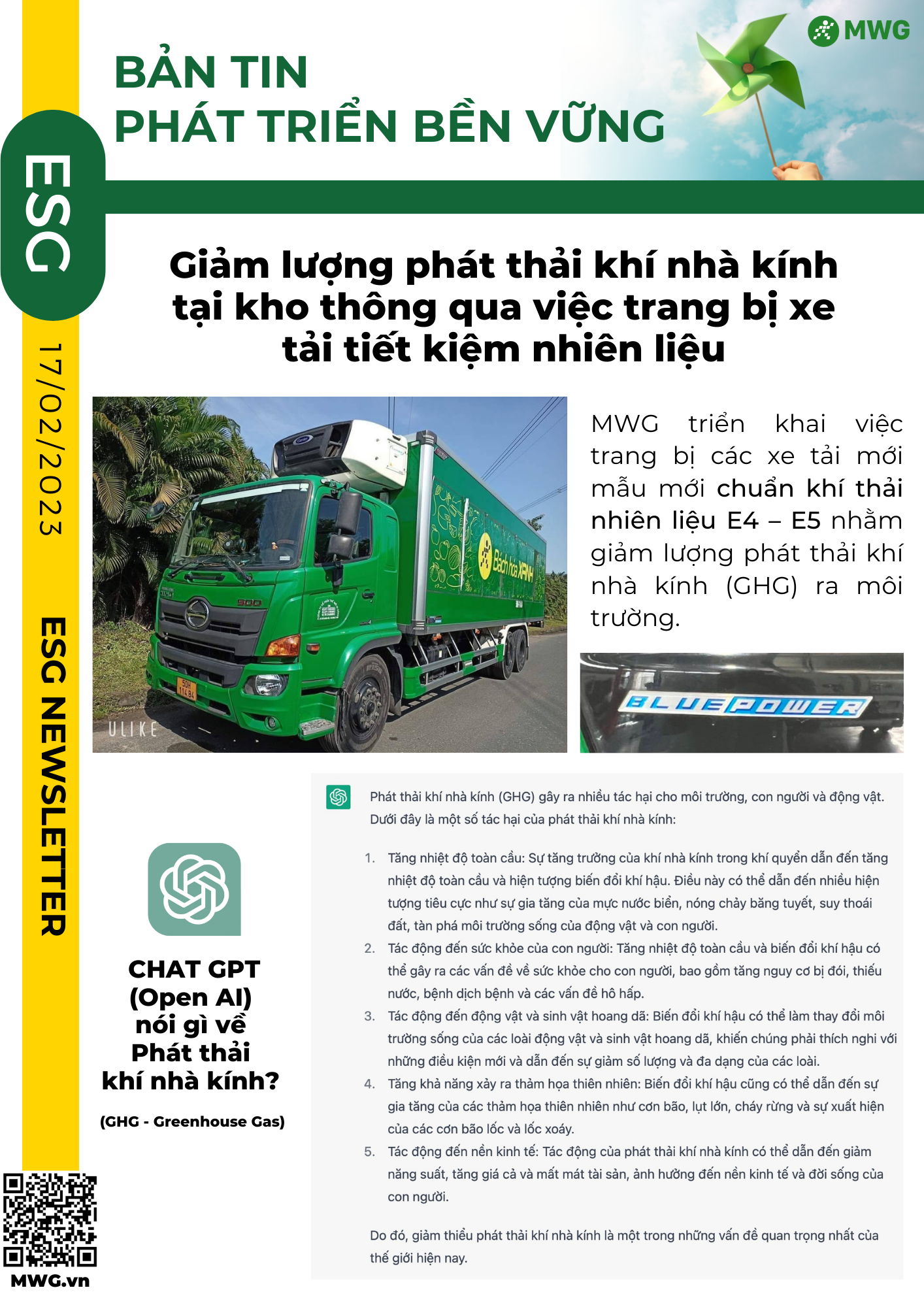 Giảm lượng phát thải khí nhà kính tại kho thông qua việc trang bị xe tải tiết kiệm nhiên liệu
