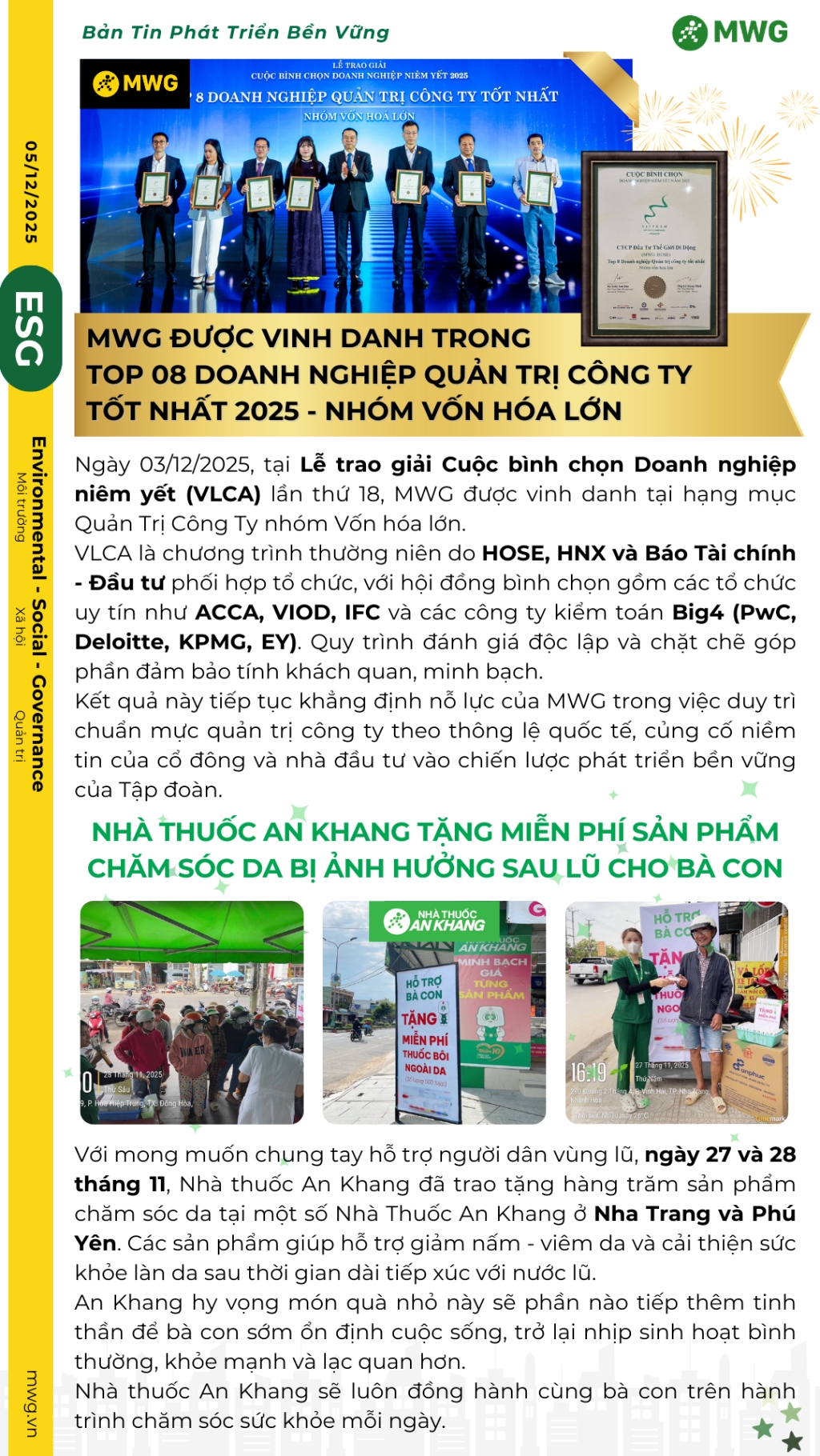 MWG Được Vinh Danh Trong Top 08 Doanh Nghiệp Quản Trị Công Ty Tốt Nhất 2025 - Nhóm Vốn Hóa Lớn