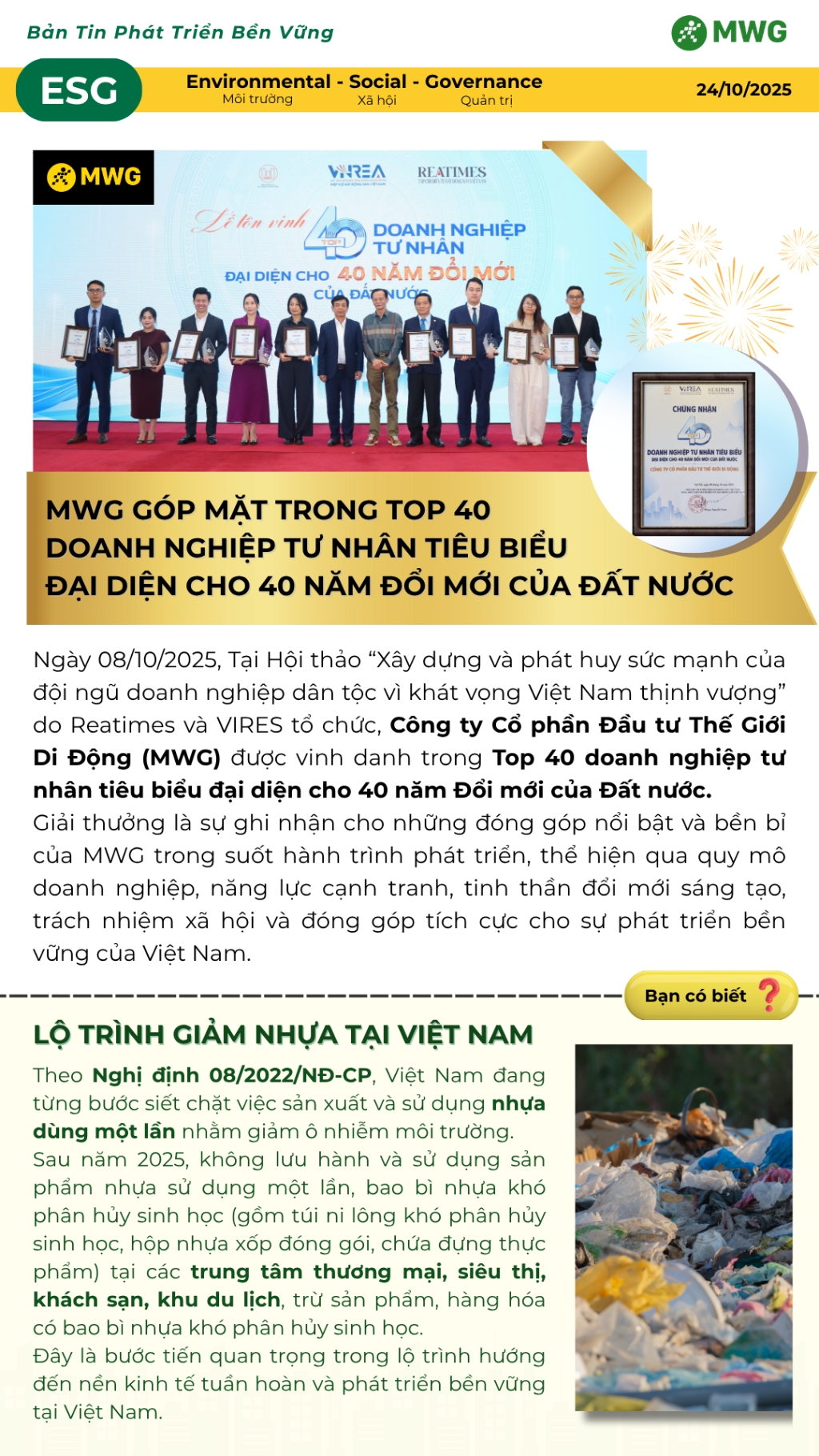 MWG Góp Mặt Trong Top 40 Doanh Nghiệp Tư Nhân Tiêu Biểu Đại Diện Cho 40 Năm Đổi Mới Của Đất Nước