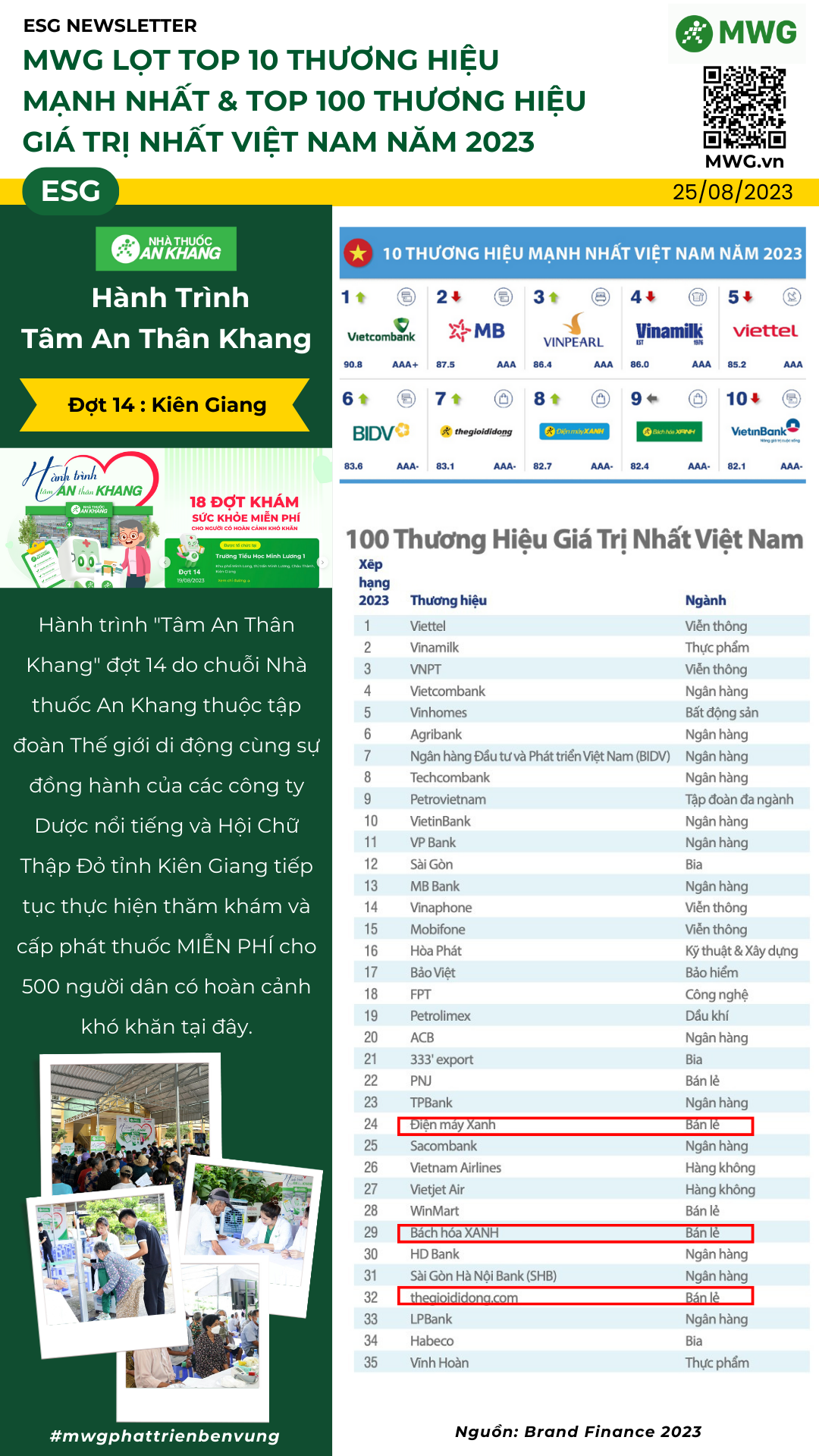 MWG Lọt Top 10 Thương Hiệu Mạnh Nhất & Top 100 Thương Hiệu Giá Trị Nhất Việt Nam Năm 2023