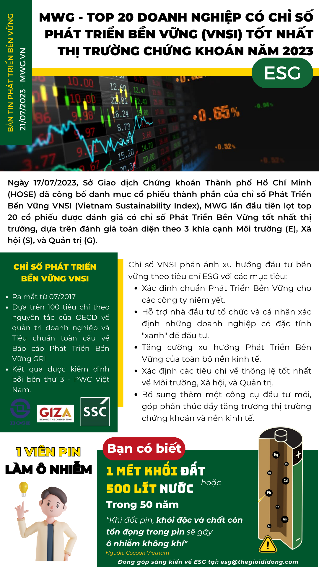 MWG - TOP 20 DOANH NGHIỆP CÓ CHỈ SỐ PHÁT TRIỂN BỀN VỮNG (VNSI) TỐT NHẤT THỊ TRƯỜNG CHỨNG KHOÁN NĂM 2023
