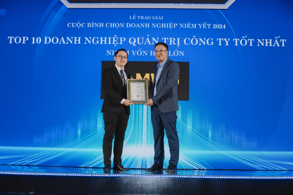 Ngày 16/11/2024, trong khuôn khổ Lễ trao giải “Cuộc bình chọn Doanh nghiệp niêm yết 2024” (VLCA 2024) nhằm tôn vinh các doanh nghiệp niêm yết xuất sắc nhất, Công Ty Cổ phần Đầu tư Thế Giới Di Động (HOSE: MWG) được vinh danh trong “Top 10 Doanh nghiệp Quản trị công ty tốt nhất” - nhóm Vốn hóa lớn.