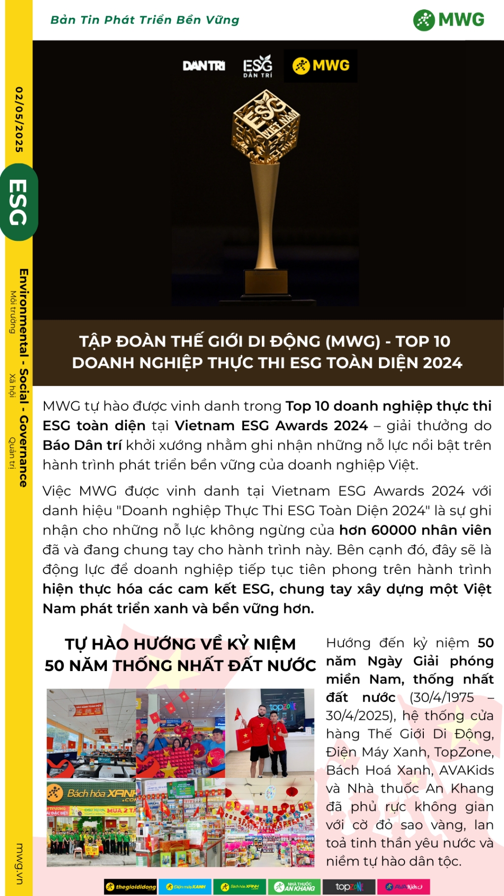 Tập Đoàn Thế Giới Di Động (MWG) - Top 10 Doanh Nghiệp Thực Thi ESG Toàn Diện 2024